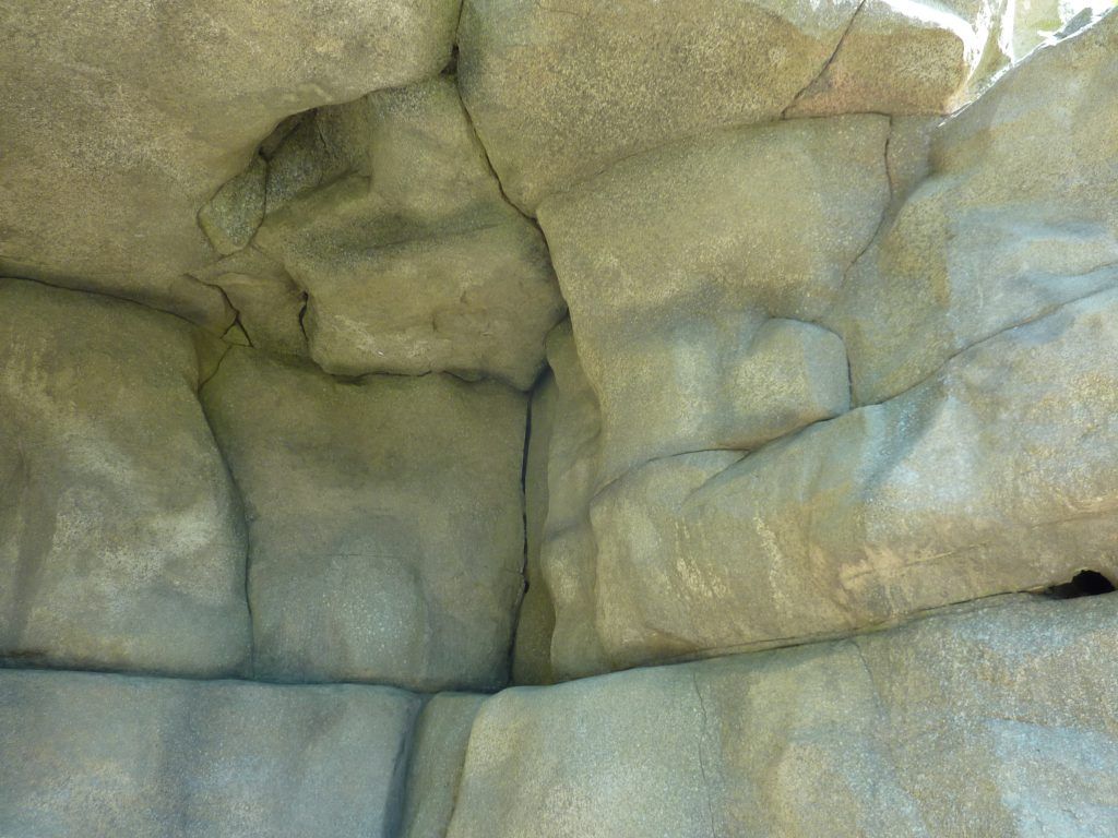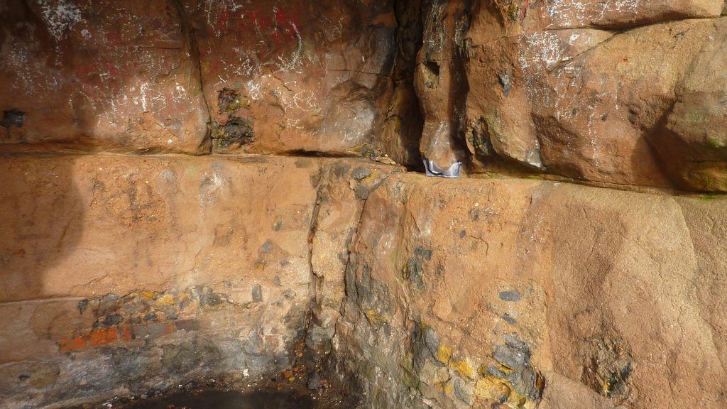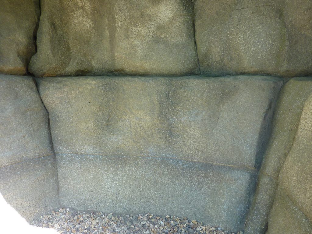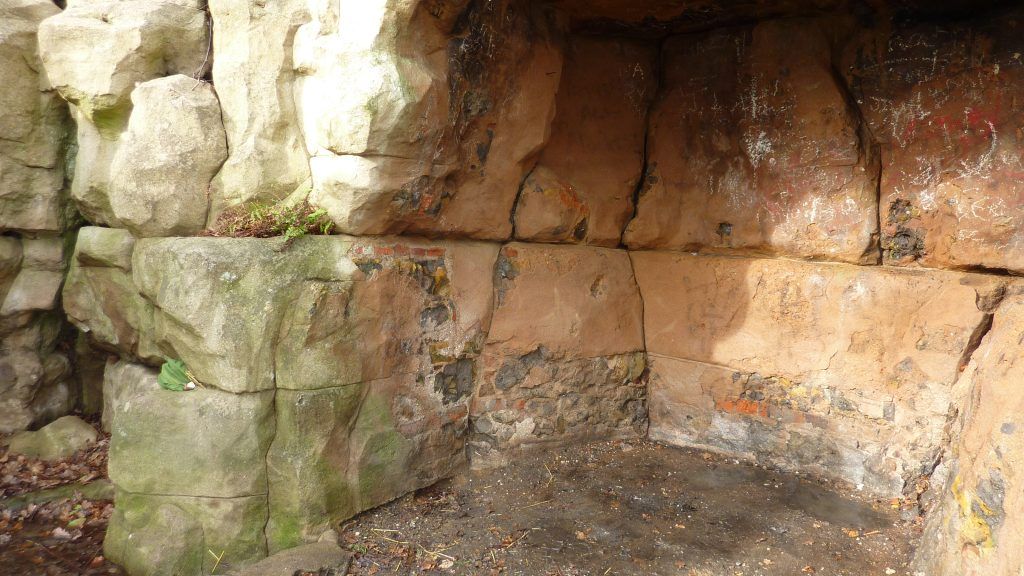 The photos below give an idea of the state of the rockwork in the grotto/cave before and after restoration. But selective rockwork all around the site has been restored/repaired.
